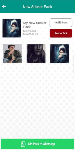 - After creating three sticker in a pack you can add that pack to WhatsApp. Press button "Add To WhatsApp"