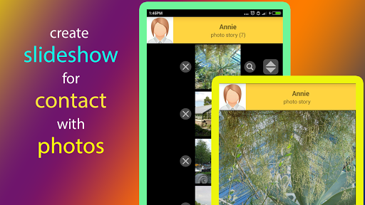 Photos in device (or taken from camera) can be linked and presented as slideshow for each contact.