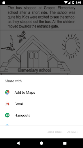 Scene 4 : The bus stopped at the corner. All the kids climbed into the bus. Anita waved goodbye to her mom and dad as she moved towards the bus.