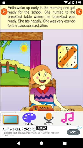 Scene 2 : Anita woke up early in the morning and get ready for the school. She hurried to the breakfast table where her breakfast was ready. She ate happily. She was very excited for the classroom activities.