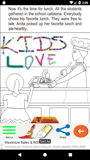 Scene 10 : Now it's time for lunch. All the students gathered in the school cafeteria. Everybody chose his favorite lunch. They were free to talk. Anita picked up her favorite lunch and ate heartily.