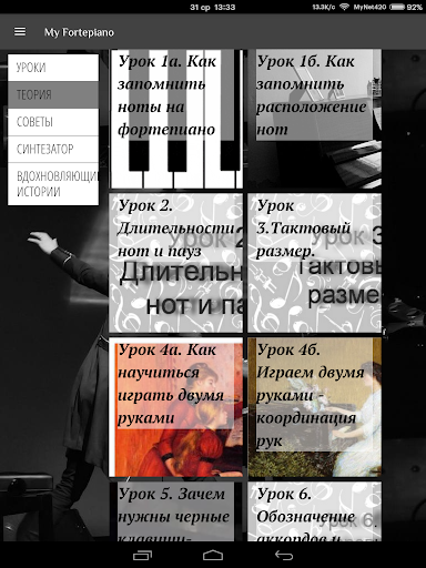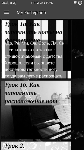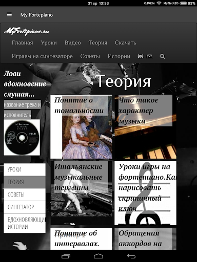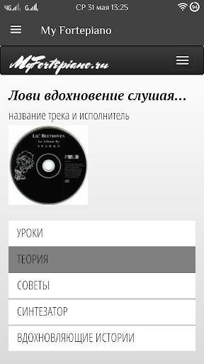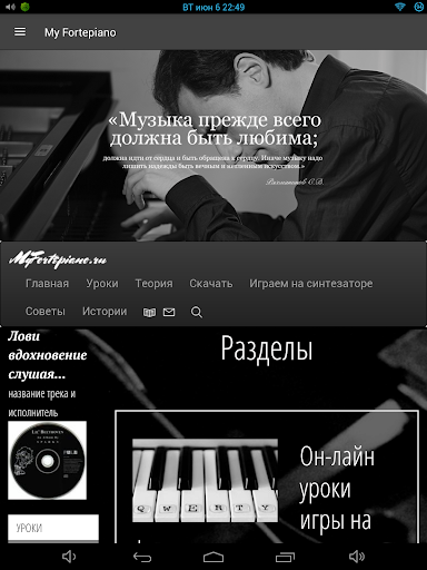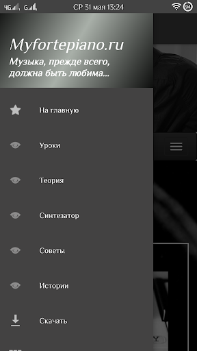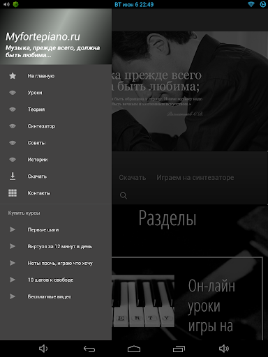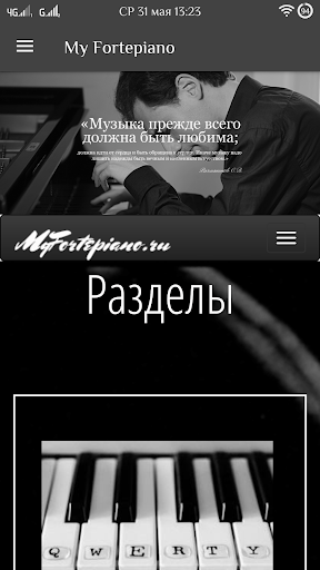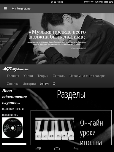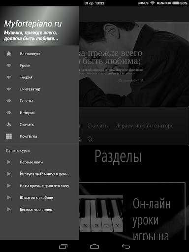 Приложение открывает быстрый доступ к сайту myfortepiano.ru, позволяет просматривать страницы сайта и осуществлять удобную навигацию.