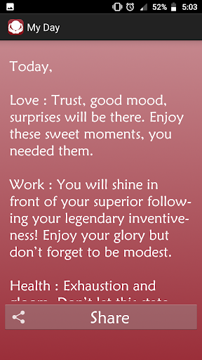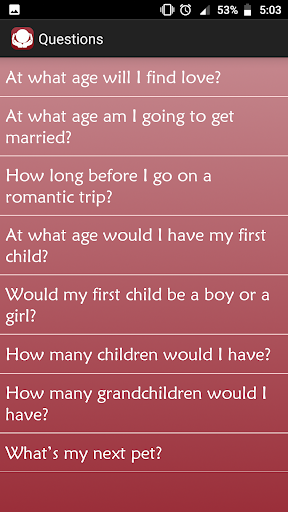 Simply launch the application, set your first and last name and your date of birth and you can then access all the answers for the questions you have about your future.
