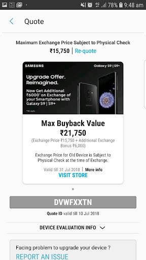 3. Visit the nearby store & the show the unique Quote ID to the store owner. Also handover your old device along with declared accessories.