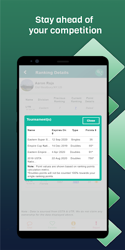 Find USTA, UTR, ITF, NTRP ranking and rating information for Tennis players, GHIN ratings for golf players and USAPA ranks=ings for pickleball players. Get notified of your current ranking status and search for other players’ ranking.