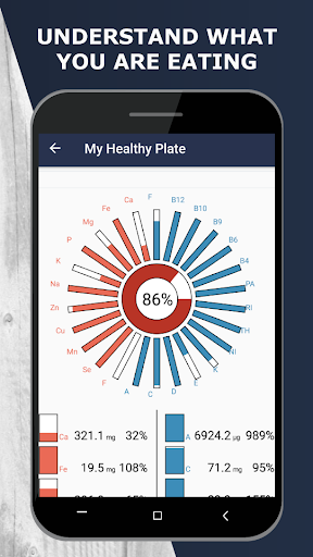 - You won’t see any boring data as all the information about your nutrition is shown as interactive Infographics with attractive Pictures, easy to read charts that give you a quick summary of your data including carbs, protein, fat, essential vitamins, minerals and much more.