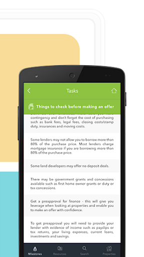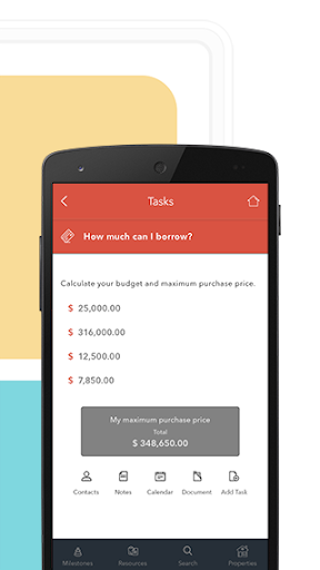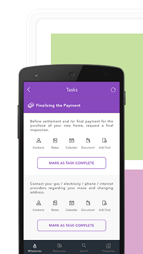 Between choosing a mortgage, all the paperwork, and communicating with lawyers and real estate agents, there’s a lot to deal with and juggle. Frustration levels can rise when trying to balance it all. The MyHomeBuy App simplifies the process of buying your new home by breaking the buying process into key milestones. Complete tips and tasks as you move along. In addition to the ‘milestones’, we have three other features that will make your home buying journey fun and smooth by keeping you on track and organised. Add your own tasks depending on what you’re buying and what needs to be done.