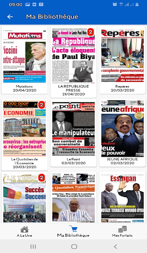 คุณสามารถเข้าถึงสื่อกลางทั้งหมดสื่อต่างประเทศและกดเฉพาะทุกวันตั้งแต่ 4 โมงเช้า เราให้ความสำคัญกับสื่อขนาดใหญ่ทั้งหมดเช่นแคเมอรูนทริบูน, เศรษฐกิจประจำวัน, วัน, การกลายพันธุ์, Infomatin, The Guardian Post, Young Africa, The Hebdo Point, Ecomatin, Evomatin, Eye of Sahel, ตอนเย็นการศึกษา Hebdo, Echos Health , กีฬาทางอากาศและนิตยสารคนอื่น ๆ