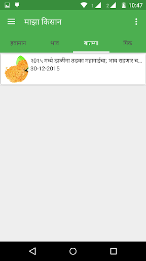 This app is for agriculture traders and farmers in India. Farmers can now able to get the prices online. App is covering most of the farm product from all over the Indian agriculture markets, International Products, market yard.