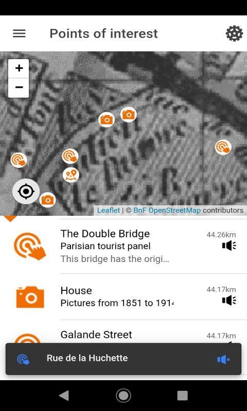 The app shows local history information. End-user can listen to historical information, discover photo from the past for some point of interest. A map helps at discovering a city and see it at different period of time.