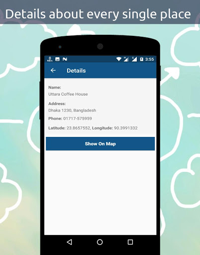 Then if one user want to know detail about that place just simply click any list then it will show the details about that place.
