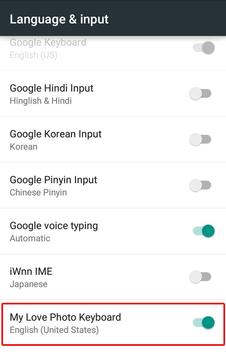 ☞ Just enable this keyboard by clicking on 'Enable Keyboard' and choose 'My Love Photo Keyboard'.