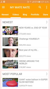 There is so much more to My Mate Nate than just my daily videos. With this app you’ll be able to not only watch all of my crazy videos, but you’ll get a glimpse into My Mate Nate’s life, see how I got to where I am today, get a Behind the Scenes look into all that I do in my life, how to buy merchandise, and check out my personal freelance work that I do around the world!!
