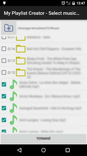 Selecting a folder will select all the music inside this folder and all its subfolders.