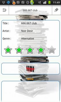 You like music ? You have a big list of CDs and you want to manage them with your mobile ? This app is for you. With it, you can record all your CDs, Cassette, Vinyl,… You can rate each music, record the bar code,