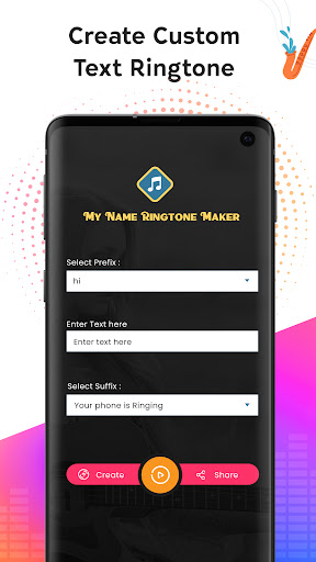 You can save your desired text and set as ringtone. It is very interesting to create your own name ringtone and while receiving a call you can listen your created ringtone. Play the tone for test and you can save with in the application, it will create your name ringtone. If you would like to create your name or your beloved ones name then it become easy to create and set as ringtone.