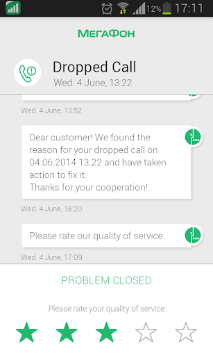- Send a claim message to MegaFon if you have a problem with the network. This message will be quickly investigated and you will receive a response