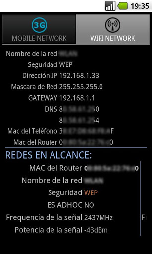 Get your status of your 3G and WiFi connections with an easy and accessible mode. Whether you are connected to a network as if you're not (in this case will display the available information)