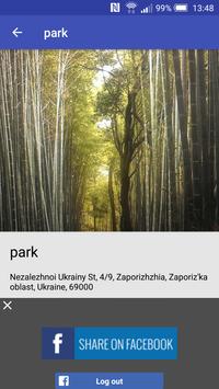 The app allows you to determine your location on the map, you can also take a picture of your favorite place and share it on facebook.