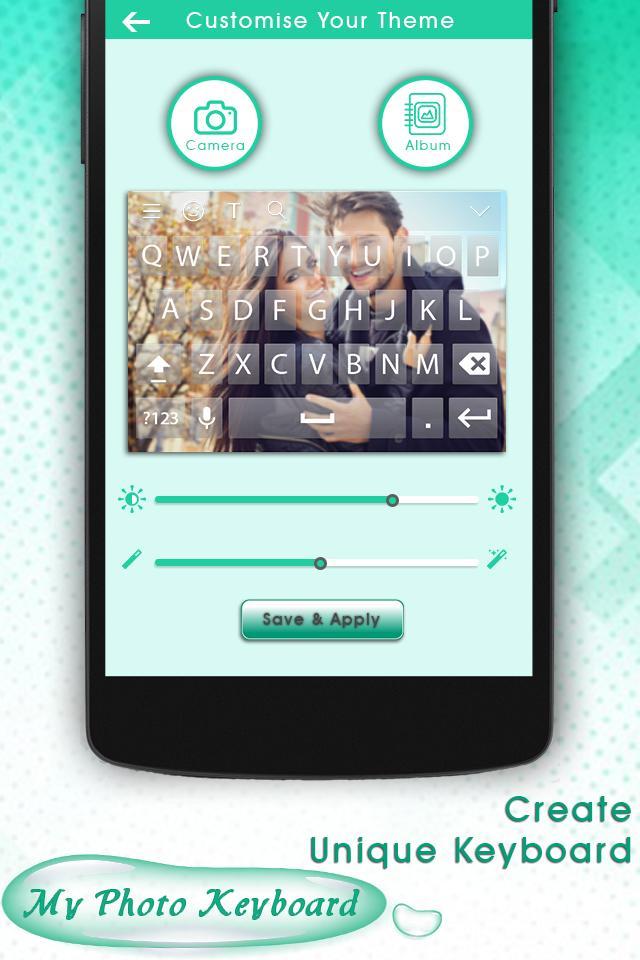 Here My Photo Keyboard app helps you to customize your keyboard and set your photo as keyboard background with best front keypad characters.