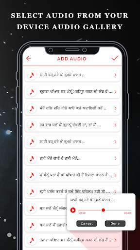 Create and share lovely Punjabi Music video within a minute with your personalized. create your own music video with your personalized photos and texts. just pick your images and select best lyrics and you are done with awesome video. You can share it on your Facebook, Instagram, Whatsapp story.