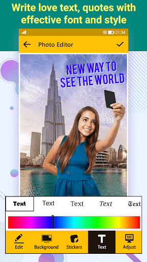 Step 12: Employ simple touch gestures to set size and orientation of the image, stickers and text effects in the Burj Khalifa background photo frames.
