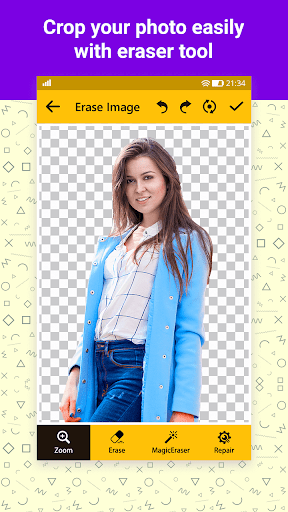 Step 6: Make use of the erase image features. Use the eraser to erase the unwanted sections of the image. Set the eraser size, pointer and feather via sliders.