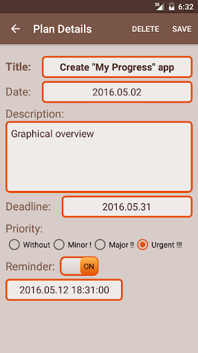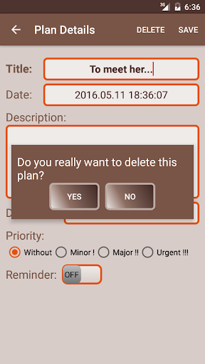 Reminder - You can switch on/off the plan reminder. In turned on case you have to pick the date and time of reminder.