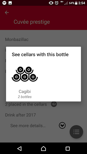 You simply want to have an overview of your bottles of wine, aperitif, armagnac, cognac, vodka, or an overview of your wine cellars ?