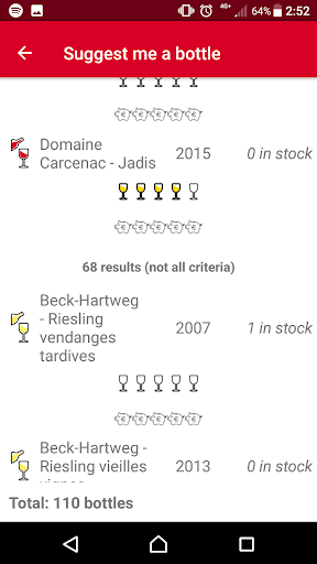 Enjoy a suggestion module to easily find what bottle to drink according to your mood and criteria !