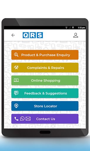 The 'My QRS' app is the official mobile app of QRS Retail Limited, based in Kerala, India. It can be used for enquiry, online shopping, complaints, feedback, store locator, and to contact QRS.