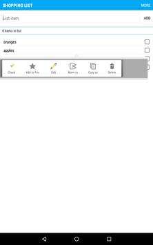Intuitive, lightweight and very easy to use Listing application. Very useful when having to maintain multiple lists in one place (Movies, To Do, Shopping List... etc). It allows the items to be copied/moved to other lists. The Favorite List helps to keep track in one place the most used items.