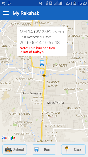 - The App includes a map that shows the current location of the bus. This is helpful when you want to check where the bus has reached & build your own guess about the time it might take to reach your registered pickup/drop point.