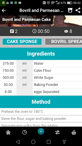 Add recipe ingredients to a shopping list and share with others via text message or email – handy when you know someone is in the store.