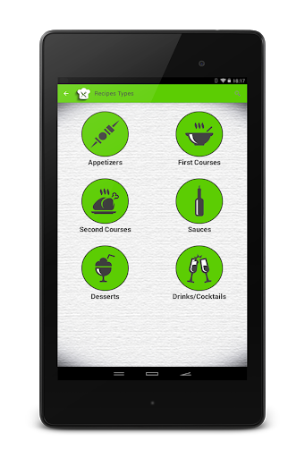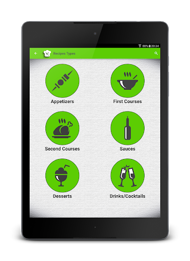 ● You can save recipes grouped into appetizers, first courses, second courses, sauces, desserts and drinks/cocktails.