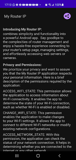 My Router IP combines simplicity and functionality into a powerful Android app. Say goodbye to the complexities of router management and enjoy a hassle-free experience connecting to your router's setup page, managing settings, and effortlessly accessing web servers or cameras.