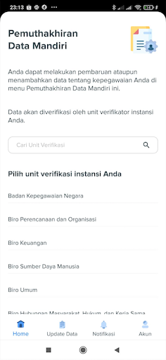 3.تحديث بيانات Mandiri من خلال تطبيق MyASN ، والذي يتكون من البيانات التالية ؛