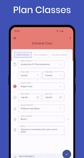 This app helps you stay in control of your classes and helps track your -