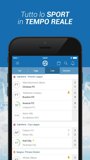 Controlla i risultati di tutti gli eventi sportivi anche del giorno precedente e consulta il calendario e le classifiche aggiornate di tutti i campionati italiani e internazionali (calcio, basket, tennis, rugby, pallavolo e molto altro). Imposta la tua squadra preferita e verifica, oltre al risultato, la formazione e le statistiche Live della partita.