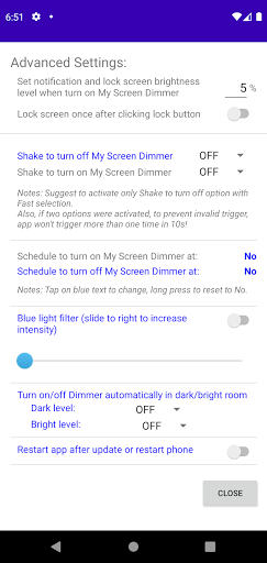 - Shake to turn on or turn off My Screen Dimmer.