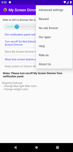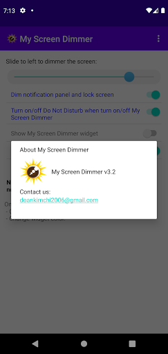 My Screen Dimmer helps you lower your screen brightness than what the manufacturer set in one touch.