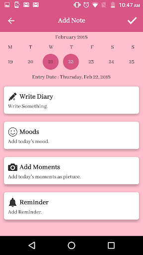 ❤ Add moods , save remainder of events (birthday,wedding,anniversary, to-do list & more) in your daily entry.