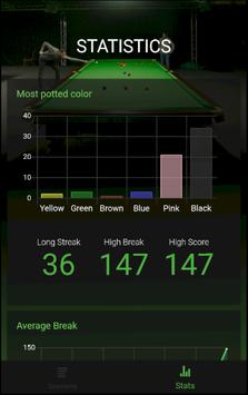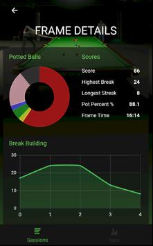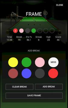 Record every snooker frame you play and go back to see details, break building and scores. View your break building and score development over time along with high scores and pot percentages.