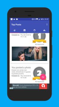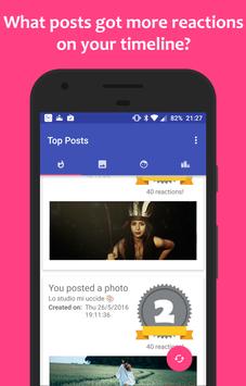 • Top Posts: see which posts received more likes and reactions on Facebook so far! keep track of every post and find them on Facebook by tapping on them.