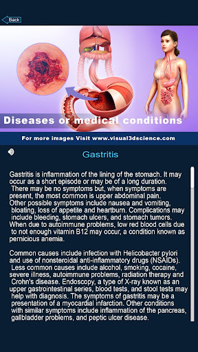 My stomach Anatomy gives users an in depth look at the My stomach allowing them to select , x-ray view, hide and show individual Organs as well as , draw or white on screen and share screenshots, Audio pronunciation for all anatomical terms and more.