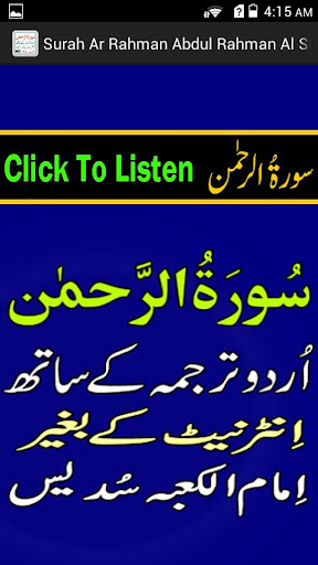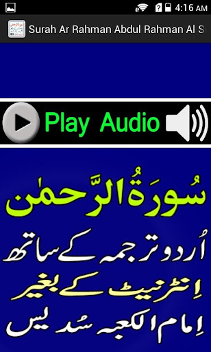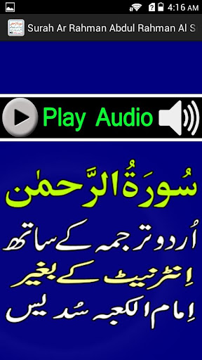 This is the best app of Surah Rahman with urdu tarjumah in Sudaes Voice which play Audio Mp3 Tilawat without internet.