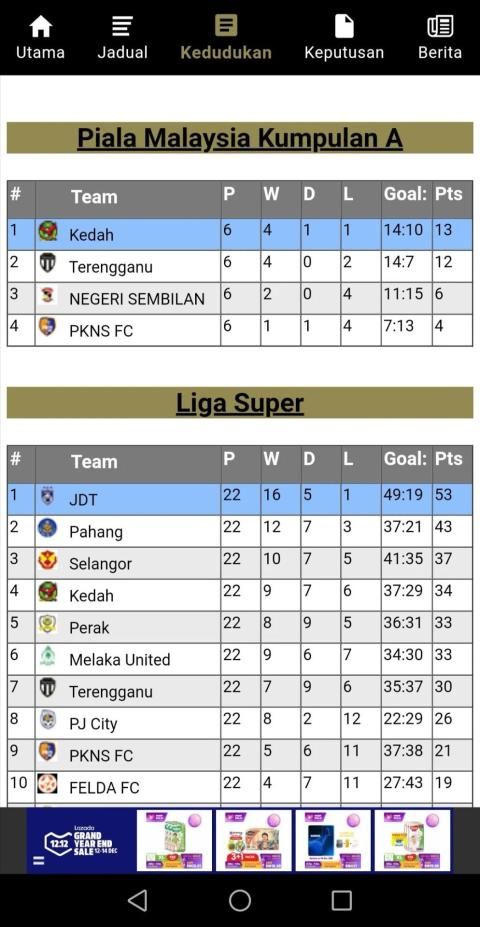 - Auto kemaskini untuk keputusan perlawanan yang sedang berlangsung (Laman utama dan laman Penjaring)