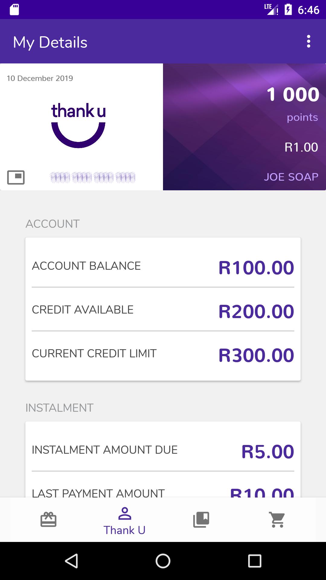 - Store your Thank U Rewards card as an e-card on the app and never miss an opportunity
