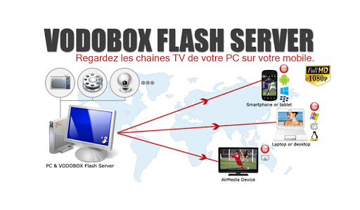 1. install the VODOBOX Flash Server software on your Windows computer to share your home's TV sources and video files with all your mobile devices having Adobe Flash Player plugin.