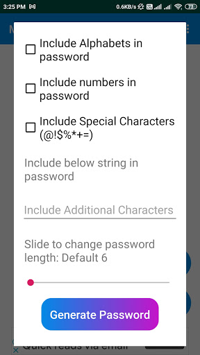 » Choose Alphabets, Numerical, Special characters or combination to generate password